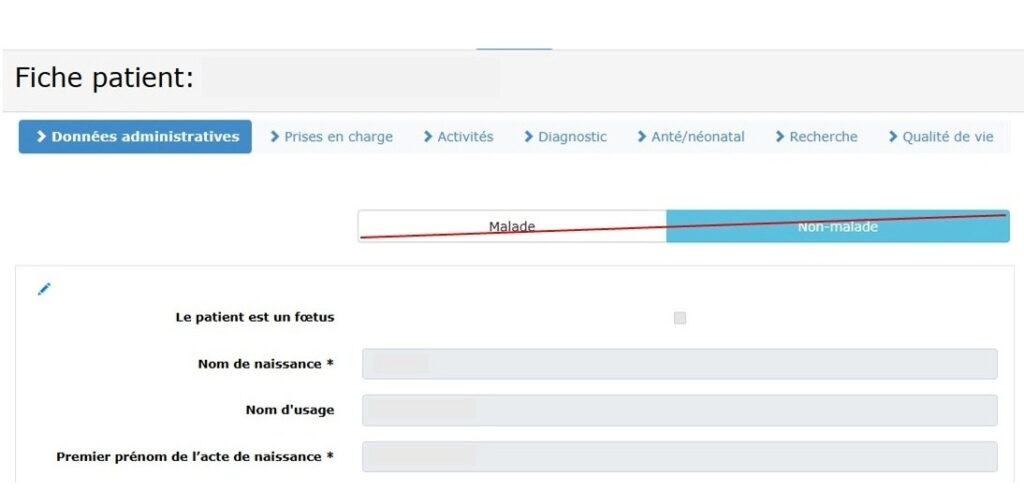 1 – Dans l’onglet Données Administratives et diagnostic : des statuts patients clarifiés